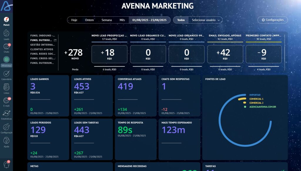 Com CRM estruturado e tráfego pago integrado, a Avenna transformou a geração de leads do Pintando o Sete em máquina previsível de vendas.